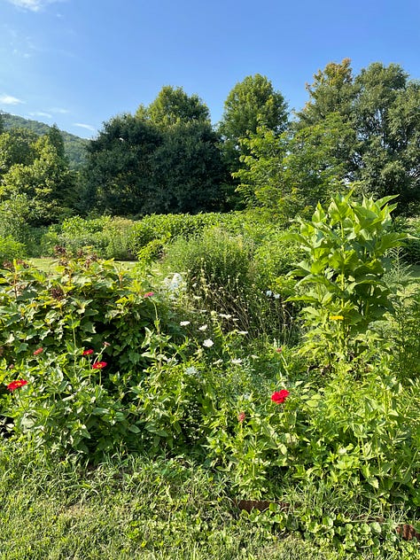 We have been in East Tennessee post wedding festivities, soaking up the magic of the Smoky Mountains. The trees are lush and my nervous system has been in a state of bliss attributed to consistent forest bathing. The summer here is a sensory explosion. The wind whispers and the chimes sound and the cicadas chat off and on throughout the day. The air is humid but the breeze promises a reprieve and the trees offer shade almost anywhere you are.